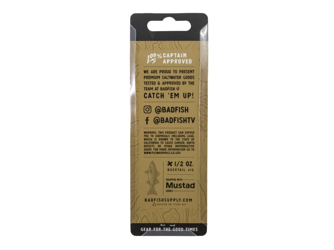 The Badfish Bucktail is a top of the line jig for versatility in saltwater. Features an enticing fluffy tail and super sharp Mustad Ultrapoint hook. You’ll have no problems calling in and landing fish on this bad boy. For deep moving water and working around strucutre, this is a go-to move.