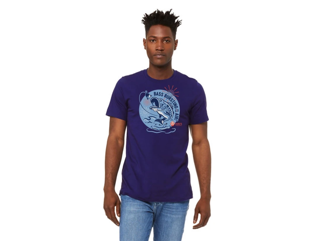 Everyone loves the bass that come in like a firework, and what better way to show appreciation for the fish that keep us coming back than to commemorate them on a t-shirt? The Bass Bursting T-Shirt from Karl’s celebrates the frog-smashing, tail-dancing mondos that we live to fish for, and with it’s 100% airlume combed and ringspun cotton composition, it will keep you comfy whether you are out hunting for giants or telling stories about them on the patio or at the bar.